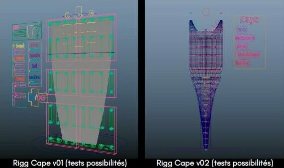 The cape, meanwhile, was modelled in the form of a tube and animated according to its silhouette as seen from the camera, as might be done in 2D animation.