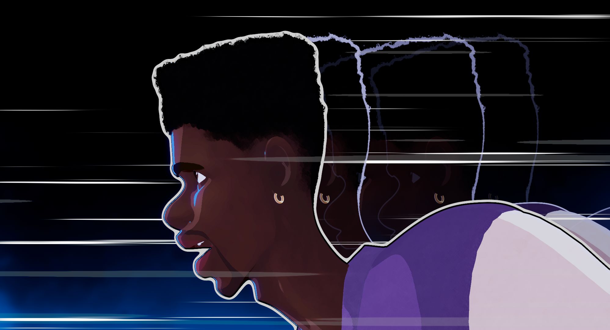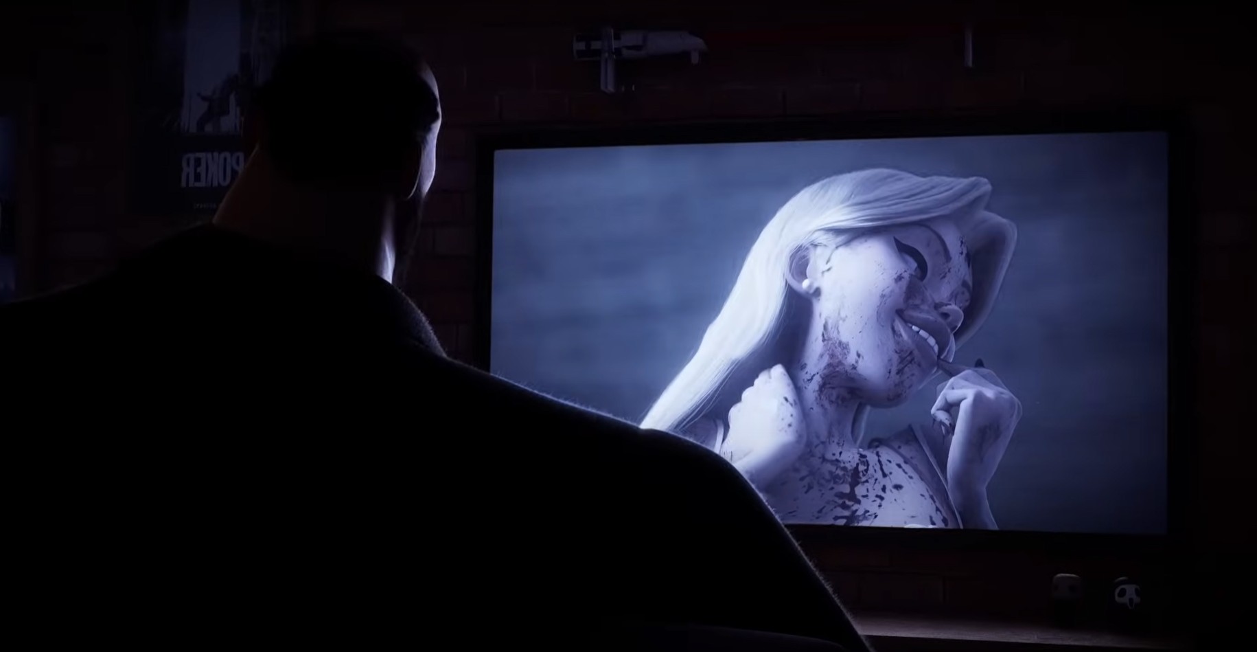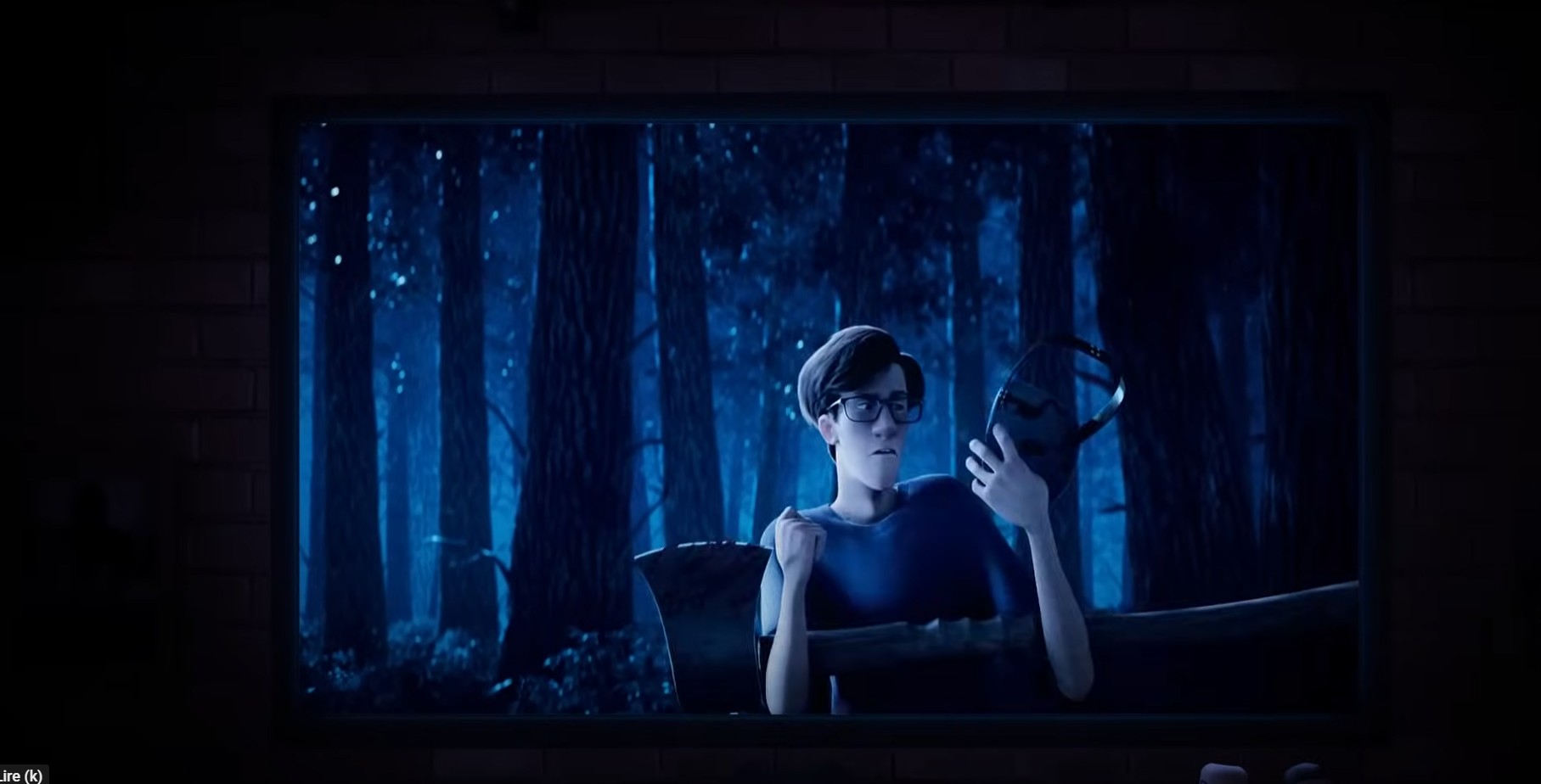The story is based on a scene from a horror film, in which a young blonde woman, Ashley , runs at full speed through a forest in the middle of the night to escape a killer.