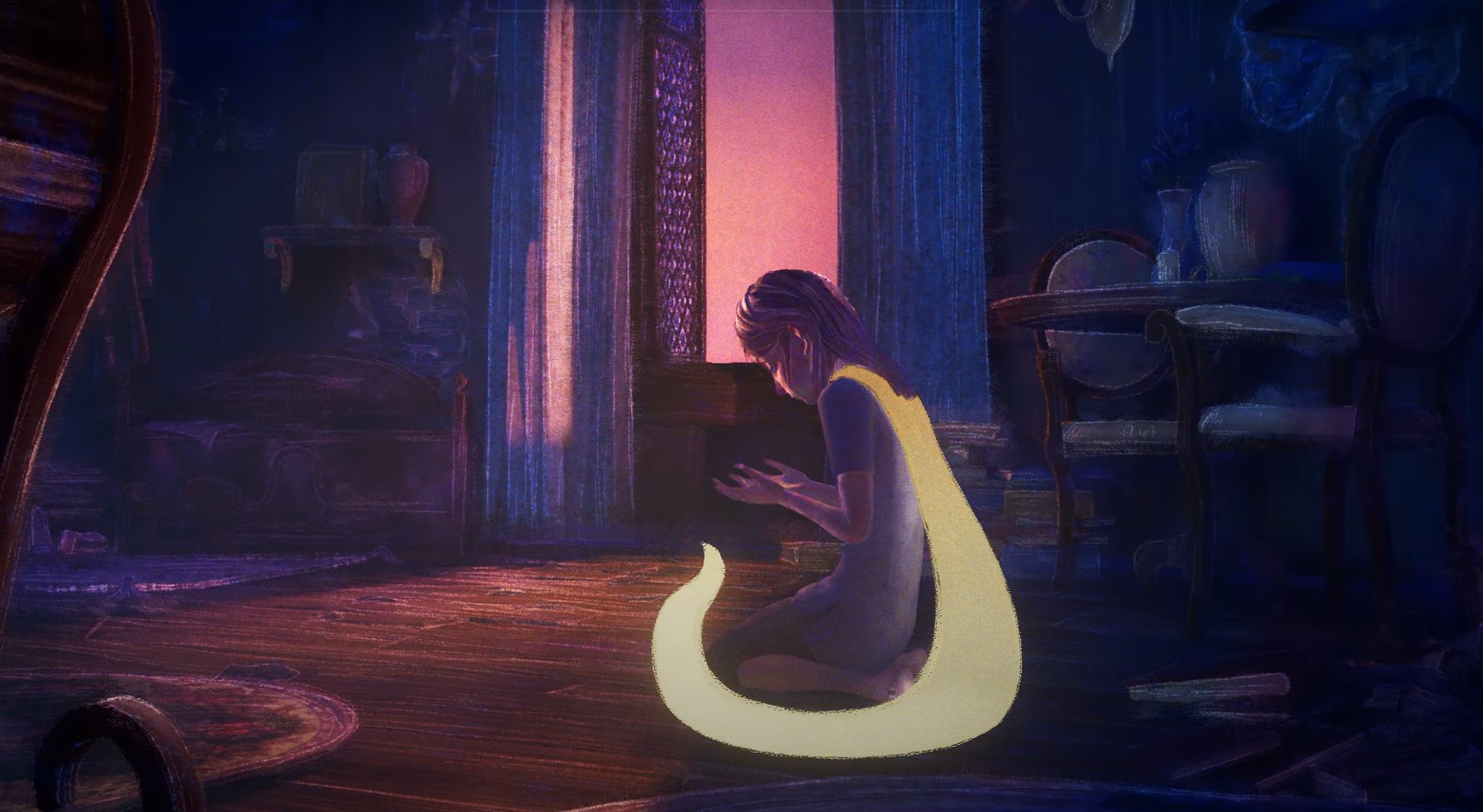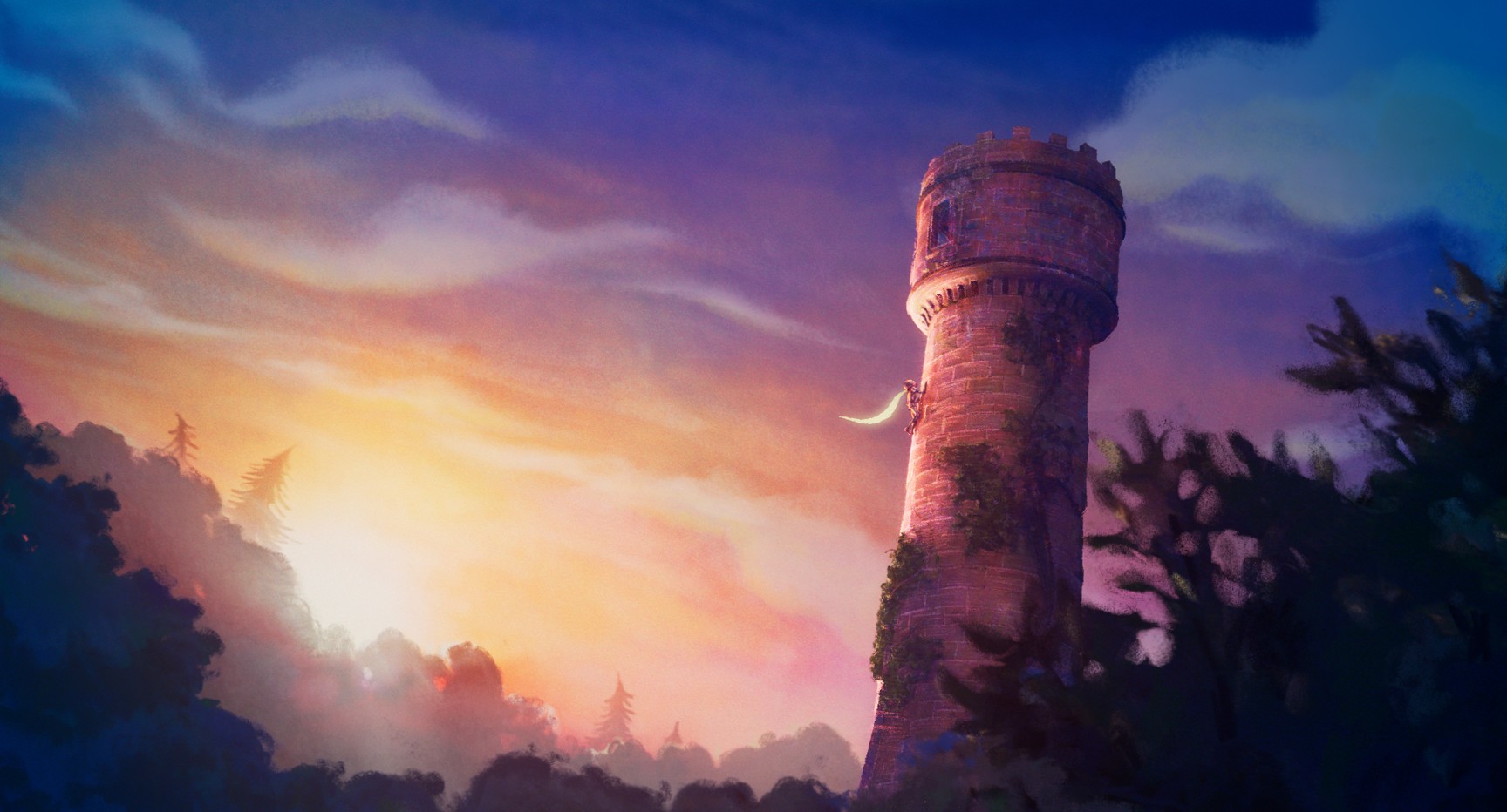 Bound together by friendship, they discover the land of fairy tales and set off for a distant tower similar to the one in the illustration to rescue a princess.
