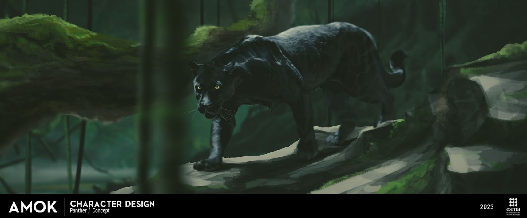 L’autre grand défi technique d’AMOK résidait dans la création de la panthère, un personnage central du film. « Réaliser un animal numérique crédible implique une maîtrise poussée du groom (les poils et la fourrure), des muscles et de l’animation en général. Nous avons dû trouver le bon équilibre entre le réalisme et notre identité graphique », précisent les étudiants.