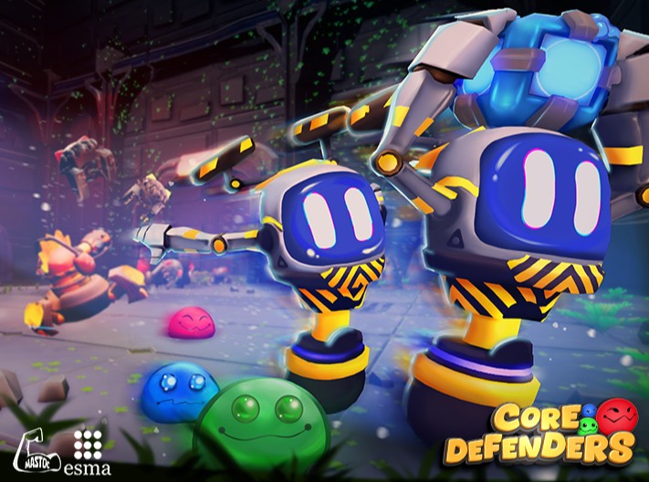 Core Defenders, jeu vidéo de type party game accessible, fun et coopératif à deux joueurs signé ESMA, est un tower defense où il faudra au duo de défenseurs une bonne dose d’ingéniosité pour récolter des ressources, mettre en place leurs défenses, et faire face à des hordes d’ennemis bien décidés à s’emparer de cette gelée mystérieuse aux propriétés uniques.