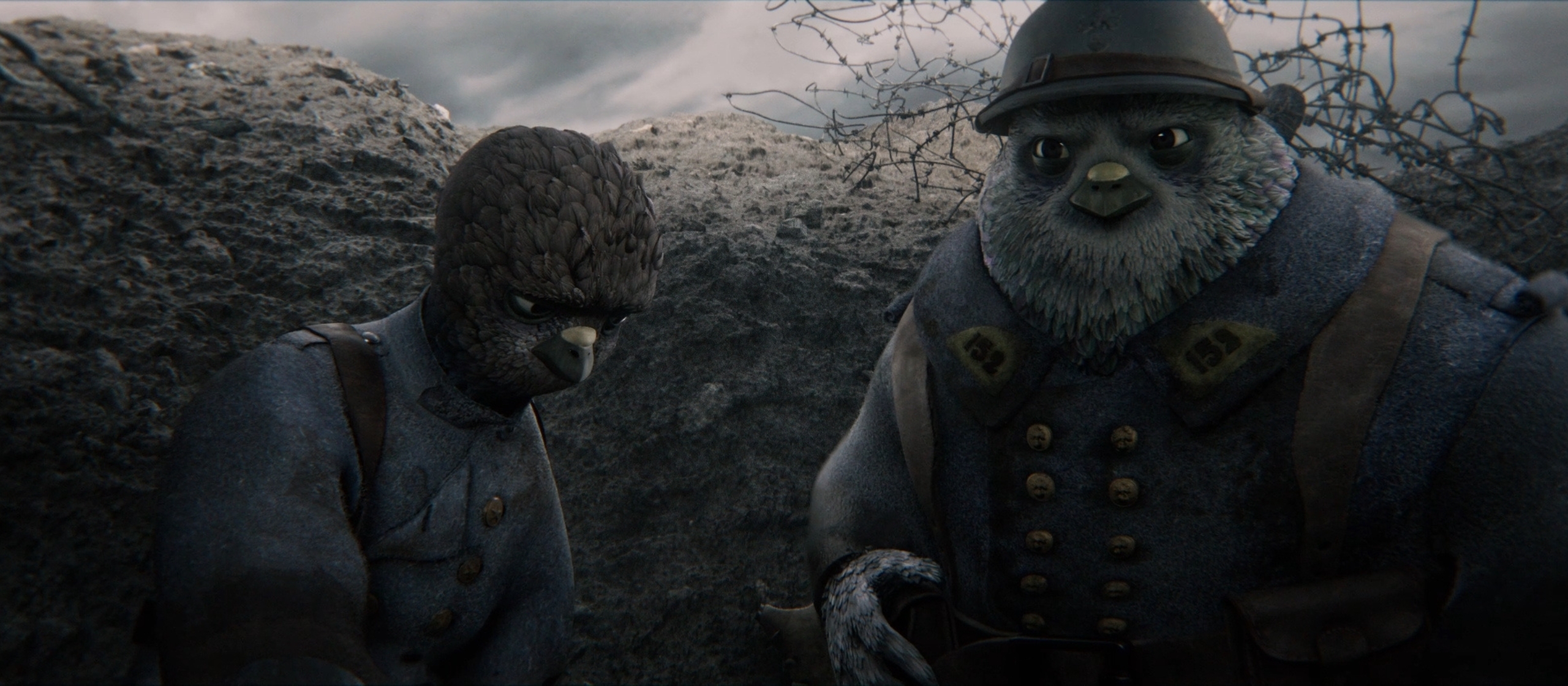 L’un des choix les plus marquants du film réside dans la représentation des soldats sous la forme de pigeons à morphologie humaine. Si ce parti pris a été immédiatement assumé par les réalisateurs, c’est bien dans l’optique d’illustrer symboliquement le mépris avec lequel les soldats étaient envoyés au front, considérés comme de la simple chair à canon.
