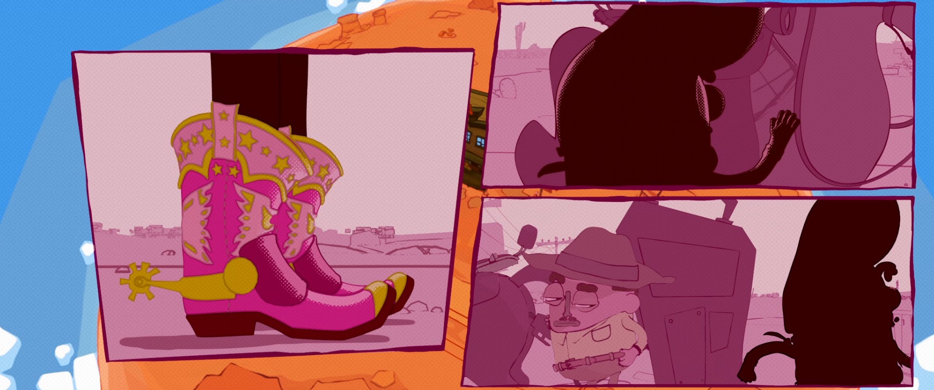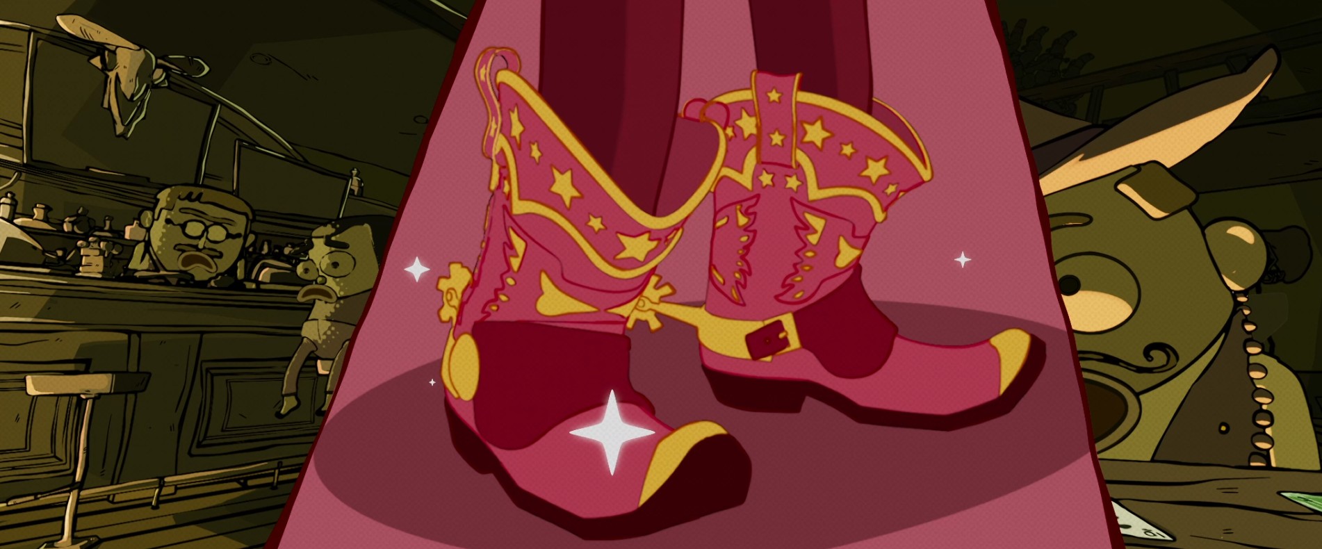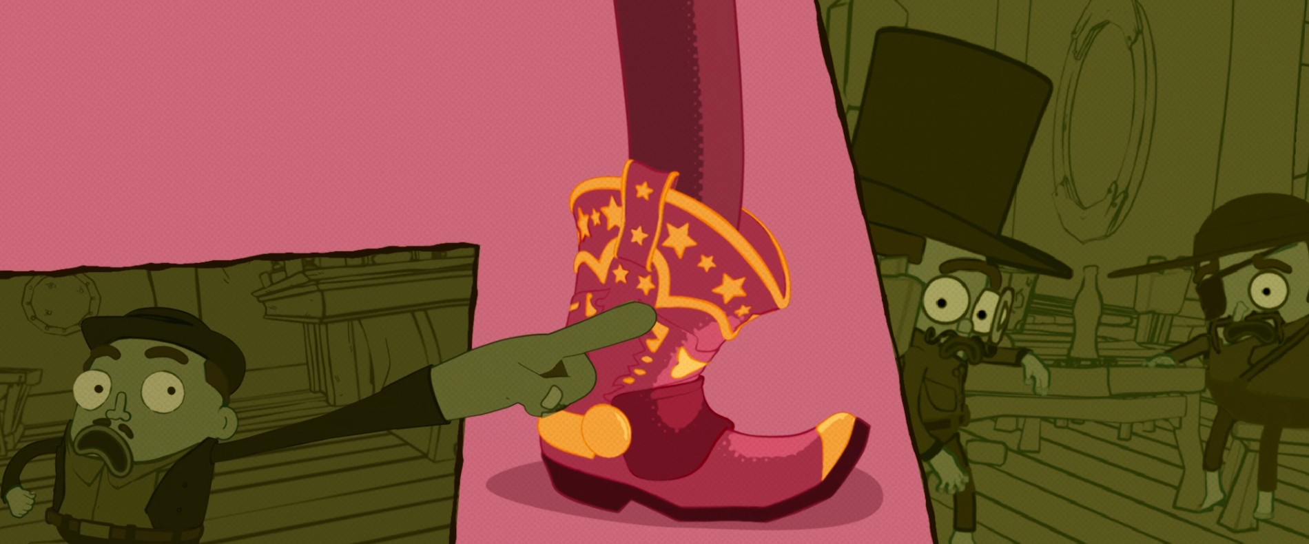 Jeff atterrit sur le toit du train, se relève difficilement et réalise que le shérif est là aussi. Il comprend qu’il n’a plus d’issue : le train roule au-dessus d’un canyon très profond. Jeff et le shérif se regardent fixement. Jeff finit par se résoudre à enlever ses bottes ; le shérif est choqué en voyant les pieds réalistes de Jeff. Jeff jette ses bottes dans le vide, le shérif les suit du regard et tombe à son tour.