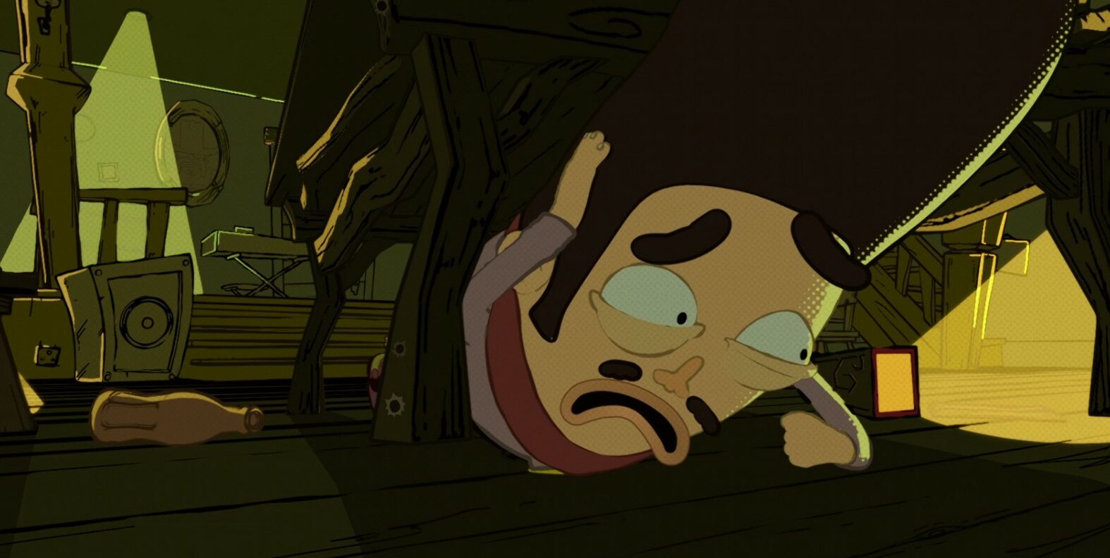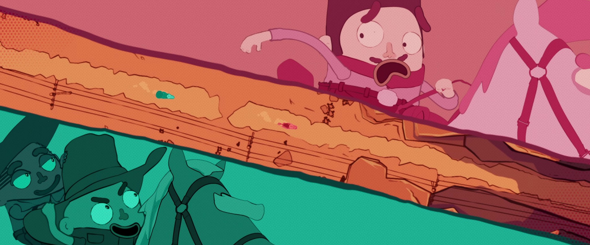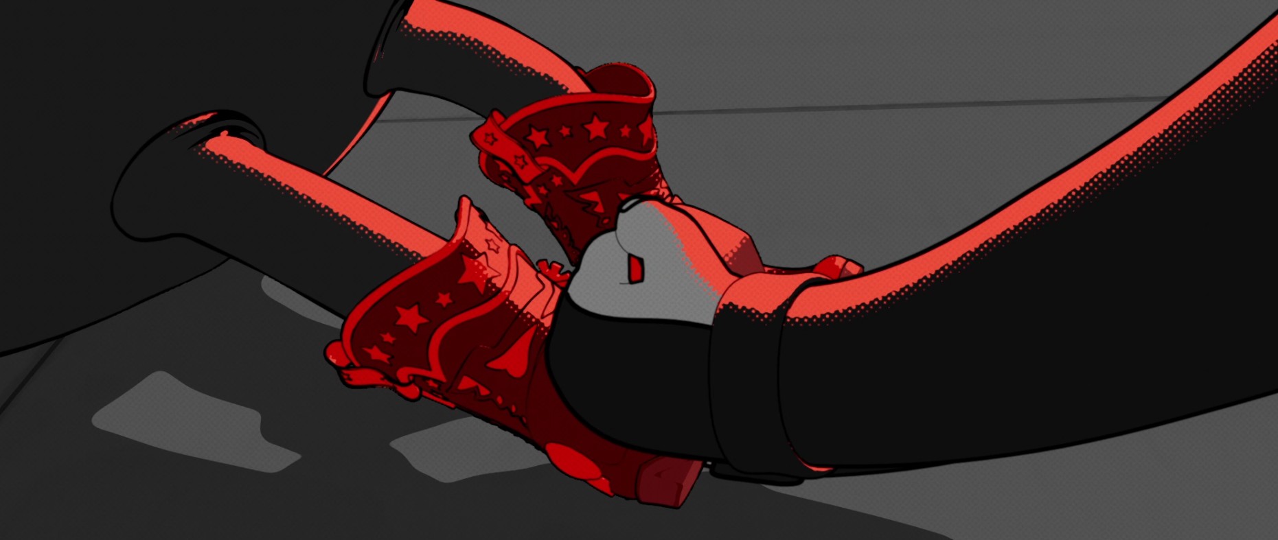 Jeff atterrit sur le toit du train, se relève difficilement et réalise que le shérif est là aussi. Il comprend qu’il n’a plus d’issue : le train roule au-dessus d’un canyon très profond. Jeff et le shérif se regardent fixement. Jeff finit par se résoudre à enlever ses bottes ; le shérif est choqué en voyant les pieds réalistes de Jeff. Jeff jette ses bottes dans le vide, le shérif les suit du regard et tombe à son tour.