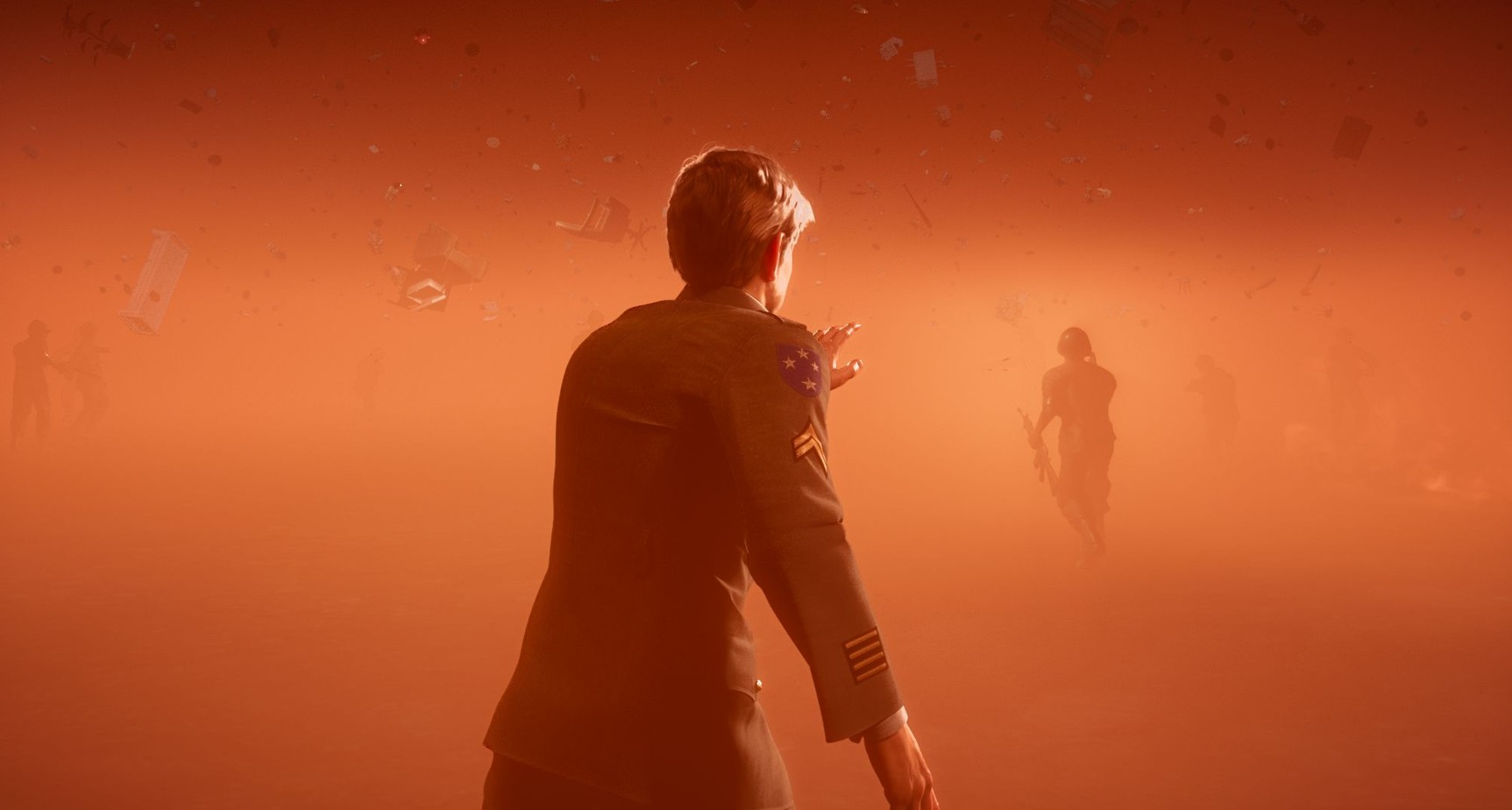 Matt se lance à sa poursuite. Il monte les marches qui disparaissent peu à peu dans un épais gaz. Il se retrouve perdu dans un vaste espace rempli de gaz orange.