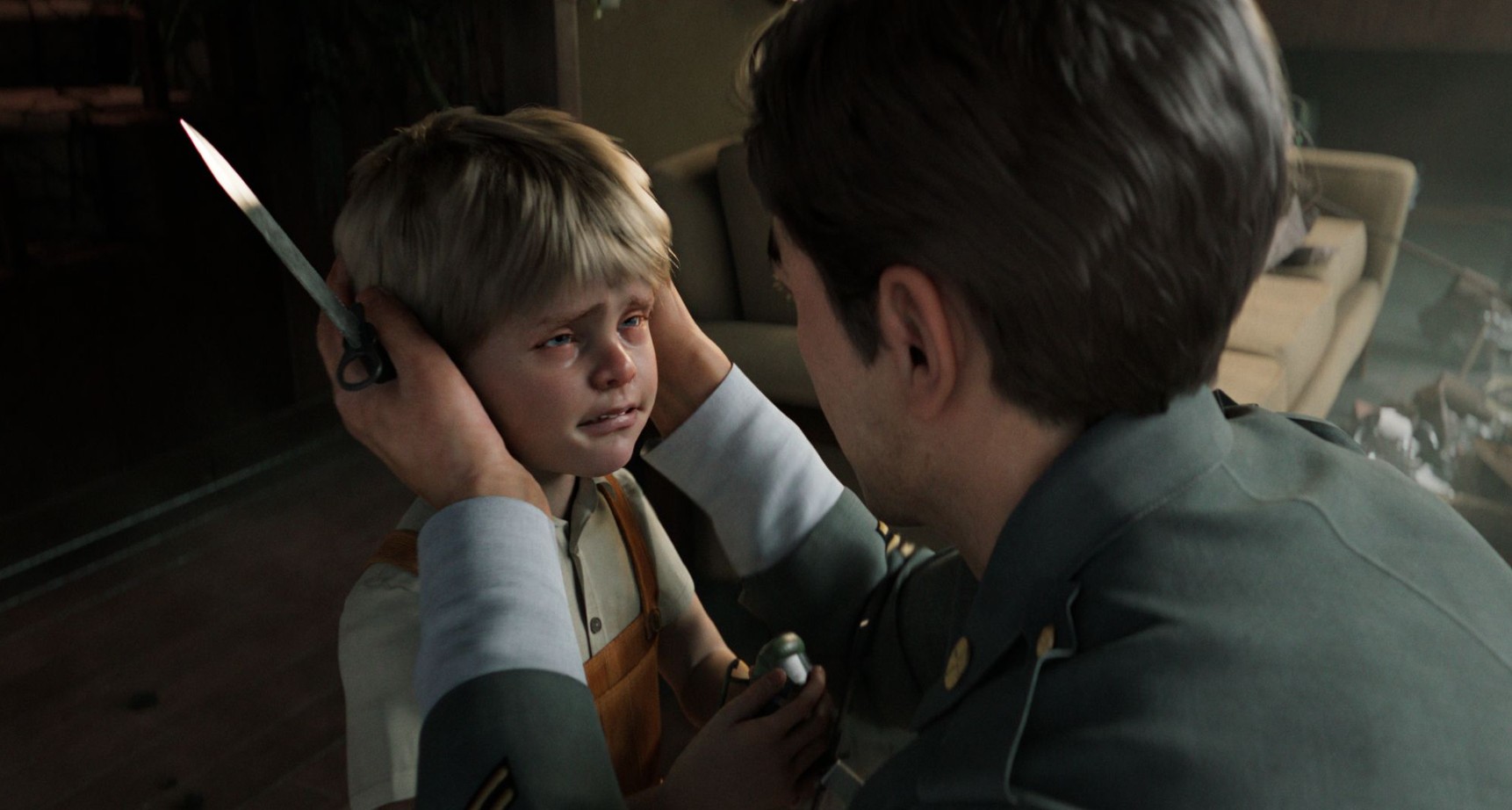 Paniqué, Matt palpe son fils, son couteau toujours en main. James tient serré contre lui son jouet, un scolopendre sort du jouet, Matt écarte l’animal brusquement. Le jouet tombe au sol. James, terrifié par son père, s’enfuit en courant en direction de l’étage.