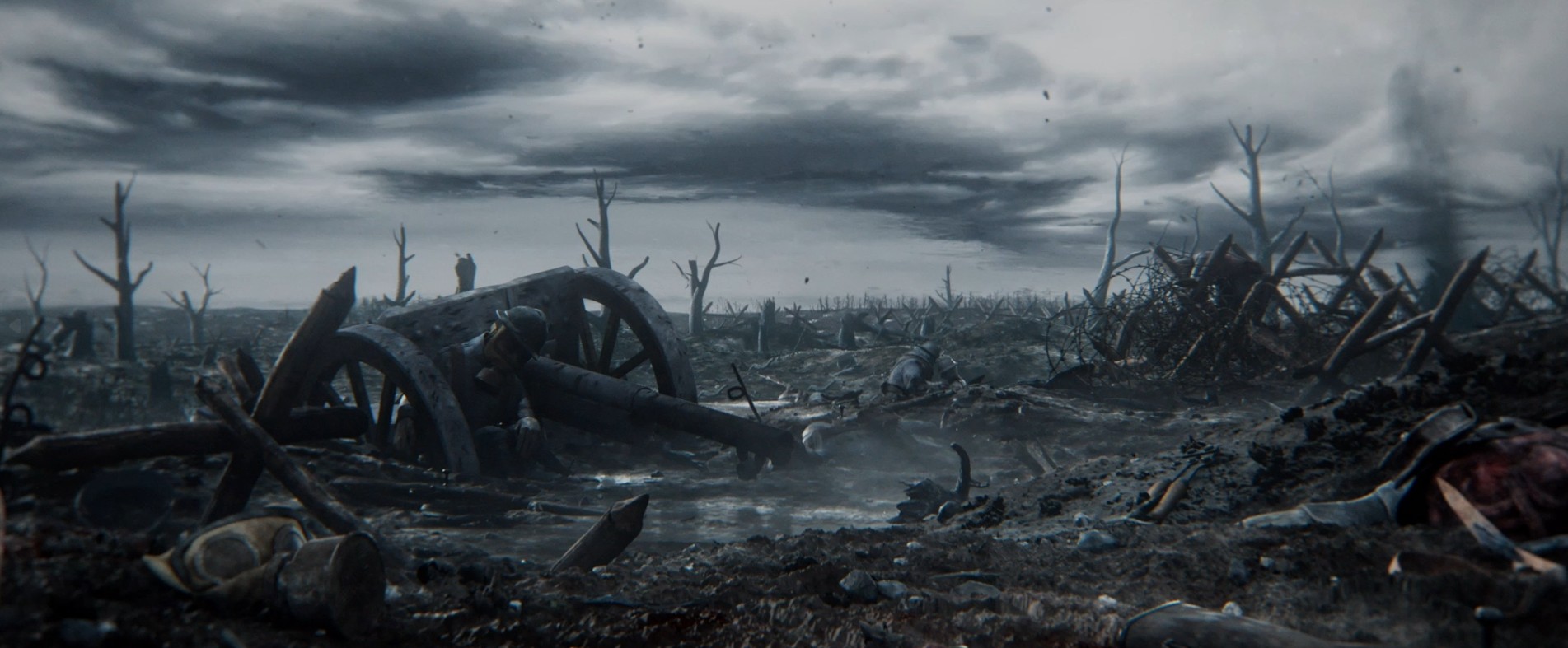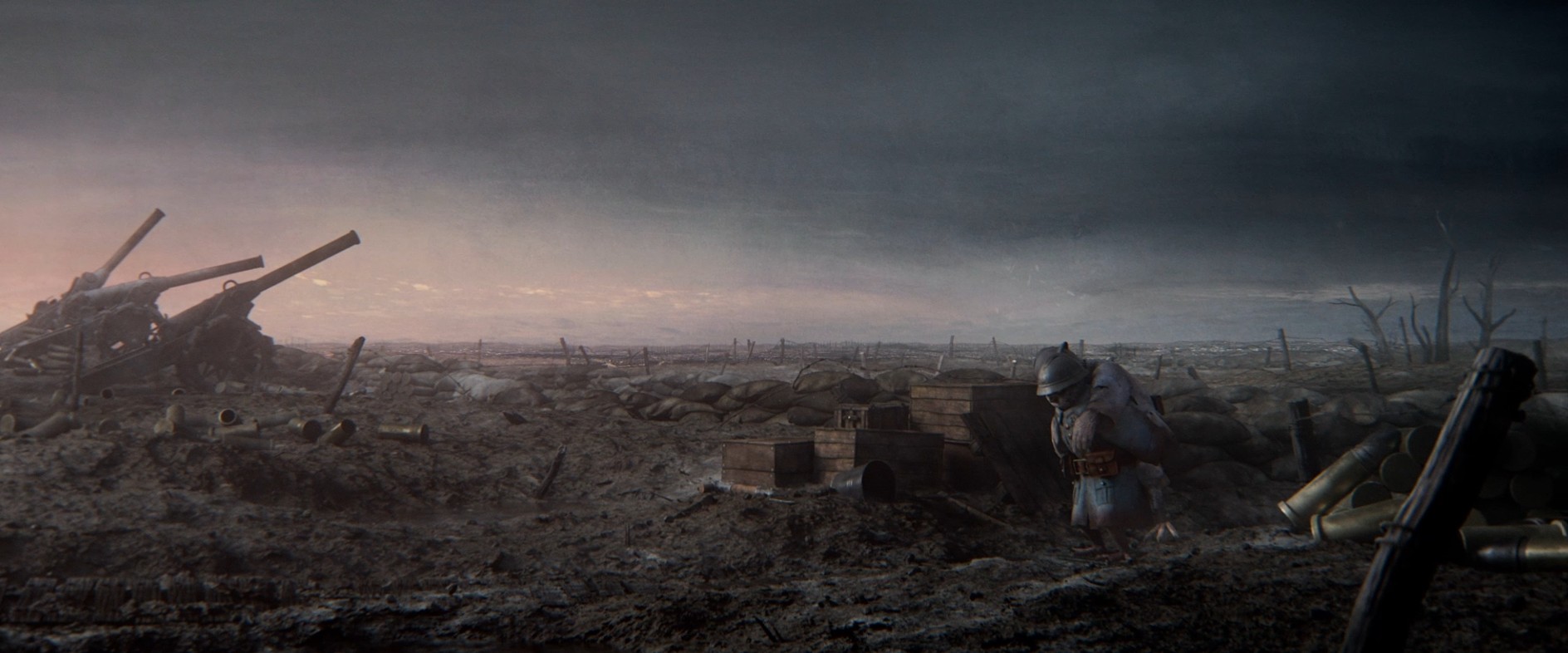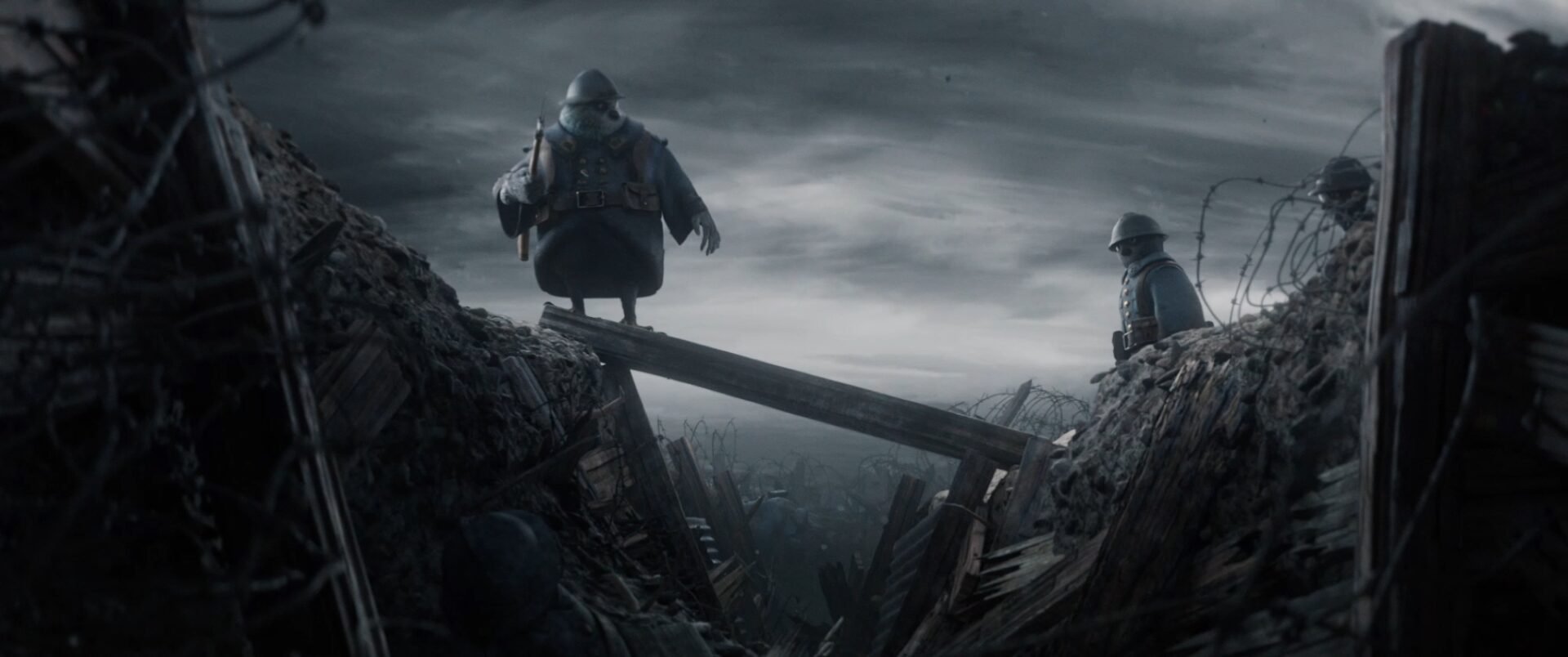 En plein milieu d’une guerre, les trois soldats se réveillent dans un cratère après un assaut.