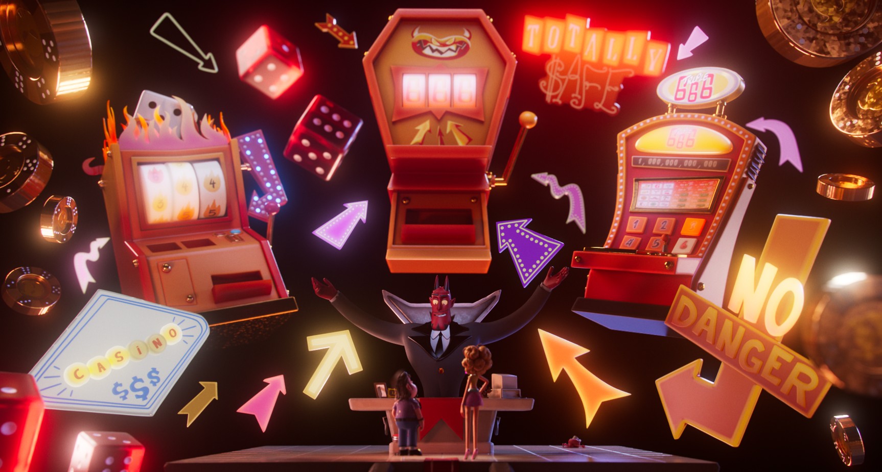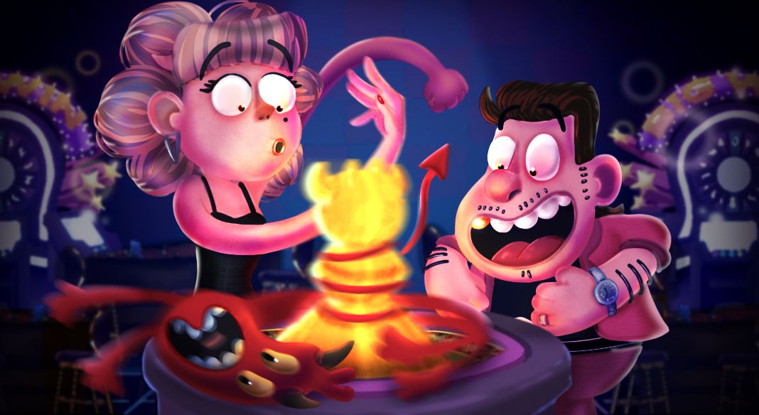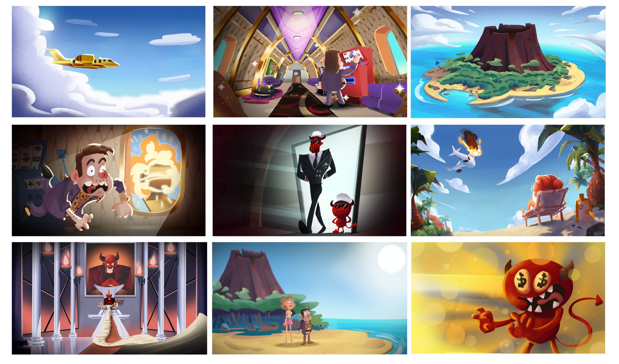 Enfin, “vacances de rêve”… jusqu’à ce qu’ils montent à bord du vol 666, où l’annonce du steward donne tout de suite le ton : prochaine escale… l’Enfer !